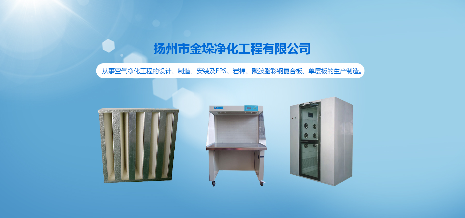 我司專業(yè)從事空氣凈化工程的設(shè)計、制造、安裝及EPS、巖棉、聚胺脂彩鋼復合板、單層板的生產(chǎn)制造。